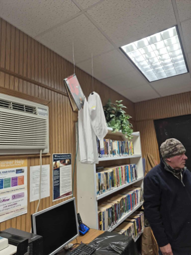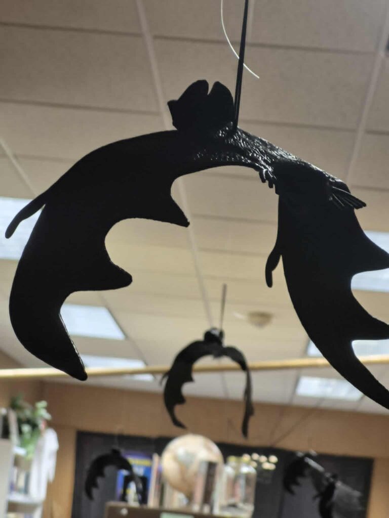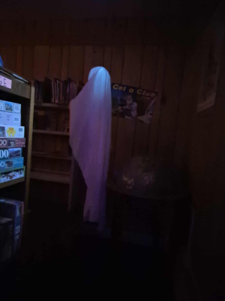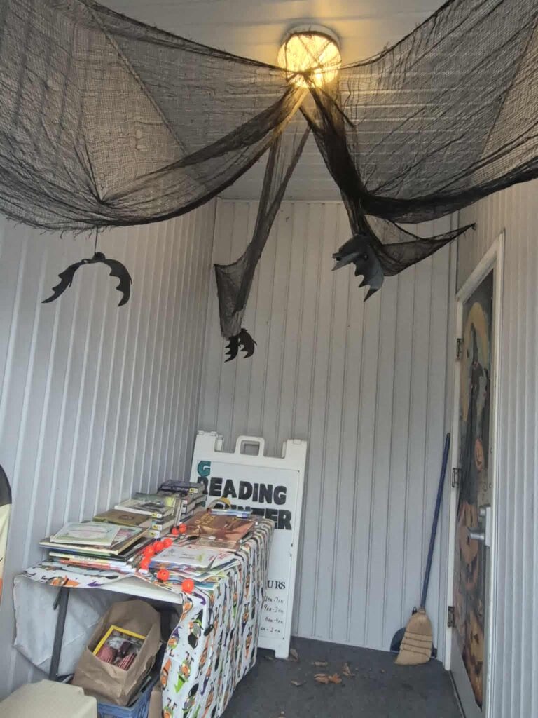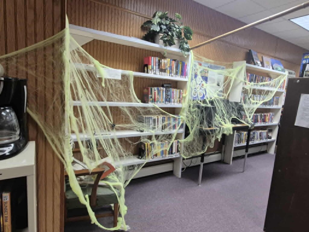 Lana the Library Spider welcomed everyone to our Haunted Library.Some parts of the building were not safe to go in!The warning sign required a little intuition!Lana wasn’t the only ‘official greeter!’ The scarecrows did their part.Free books for our visitors; just watch out for flying things!Lana’s friends got in on the ‘spirit’ of things.We’re batty for books!Book Villains were everywhere, peeping from between the pages!Libraries are treasure to those who value knowledge.The world was unsettled, Halloween night!The library spiders added their own ‘spin’ on the World Wide Web.Not even the ghosts can resist a good book!